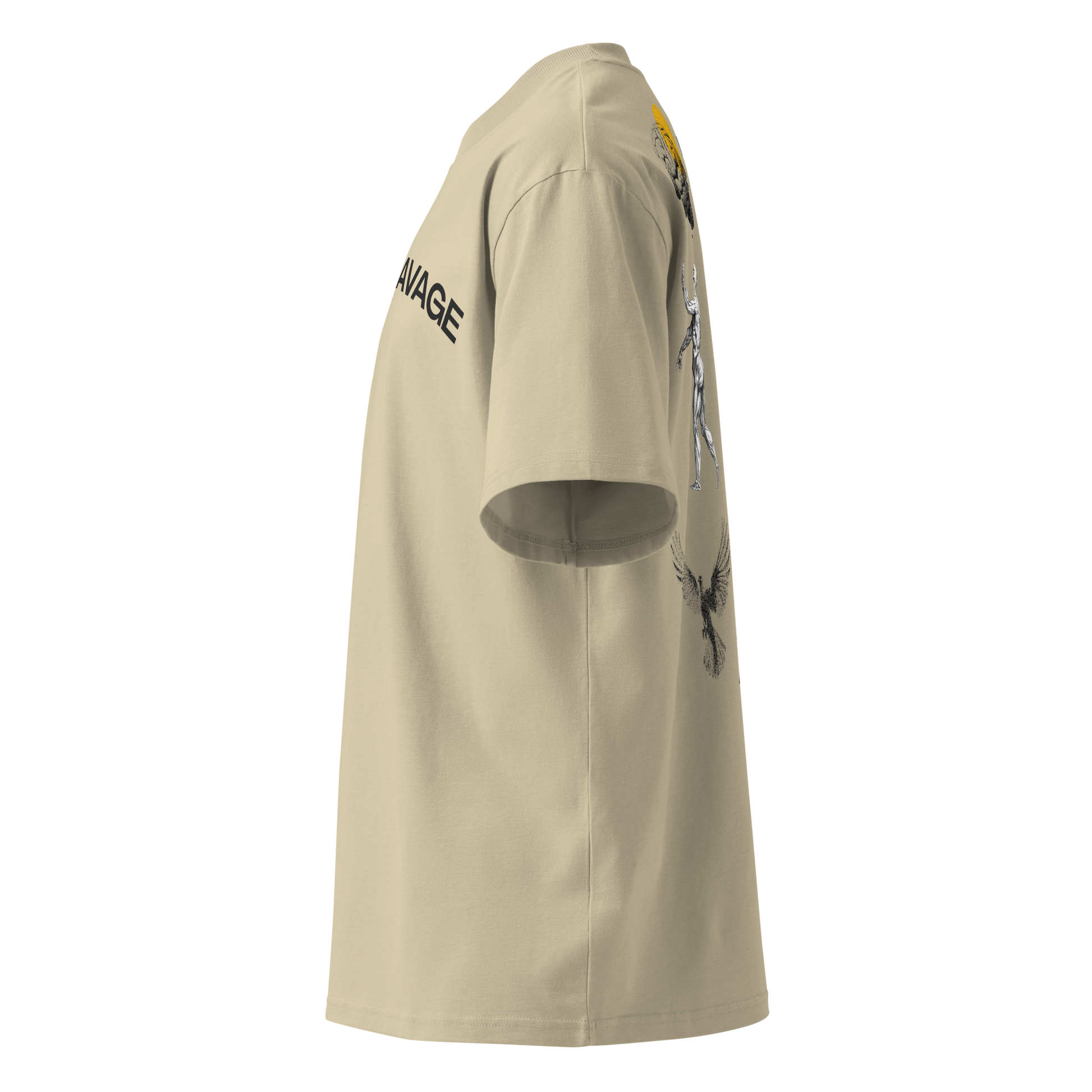 "Mind, Body, Soul". Stone Unisex organic oversized high neck t-shirt